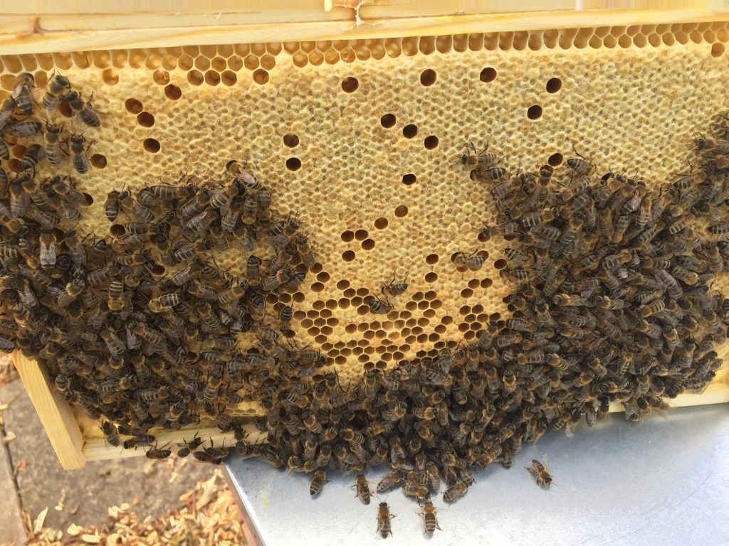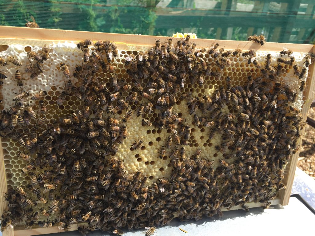 The outer edges of the frames were filling up with stores. There was lots of pollen and nectar, with capped honey on the outside of the brood frames.